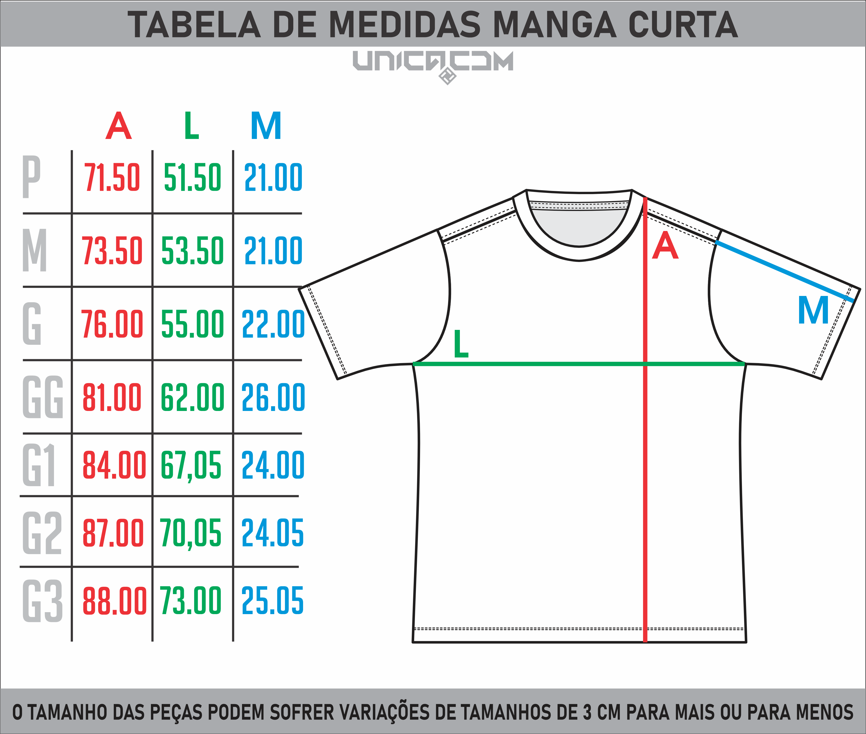 * A largura do short pode esticar, portanto, considere valores entre as larguras fornecidas.